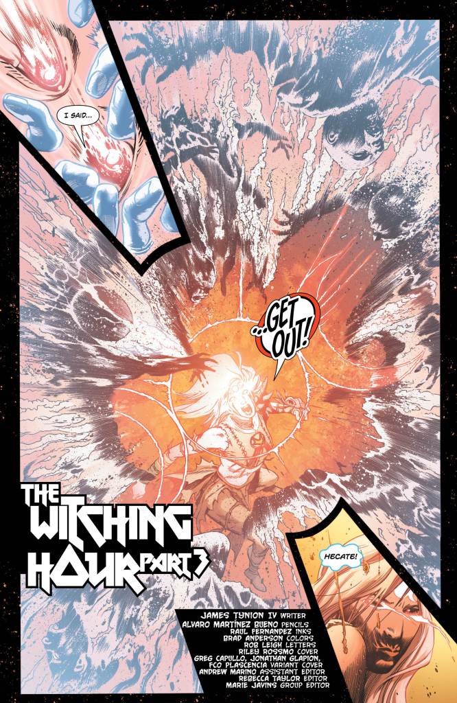 This issue is the real start of the Witching Hour, showing us the different parts of Hecate quickly coming together in an explosion of utter destruction. The art from Alvaro Martinez Bueno, Raul Fernandez and Brad Anderson does a great job of showing the huge scale of destruction, with literal gods clashing on the page and our heroes tapping away trying their best to save whoever they can.