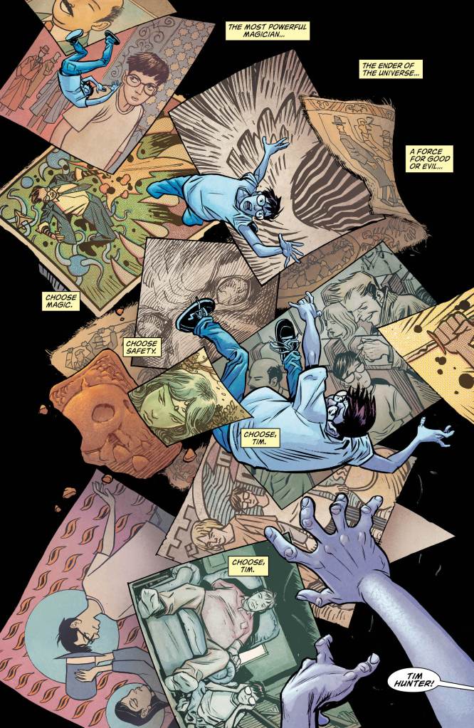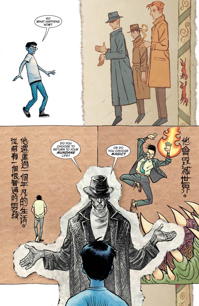 In a dark (and judging from the artist’s portrayal, another jab at popular culture like in Lucifer #1) retelling of Harry Potter, young Tim has been having dreams of an awakening of sorts. Guided by a group of mysterious strangers into discovering what the power he holds inside him could do to change not just his life but the world along with it. It seems like just a dream but with the reveal of his teacher Doctor Rose and her knowledge of the inner workings of magic, young Tim is on his way to fulfilling his true potential. But opening that door proves more risky than his simplistic interests first appear.