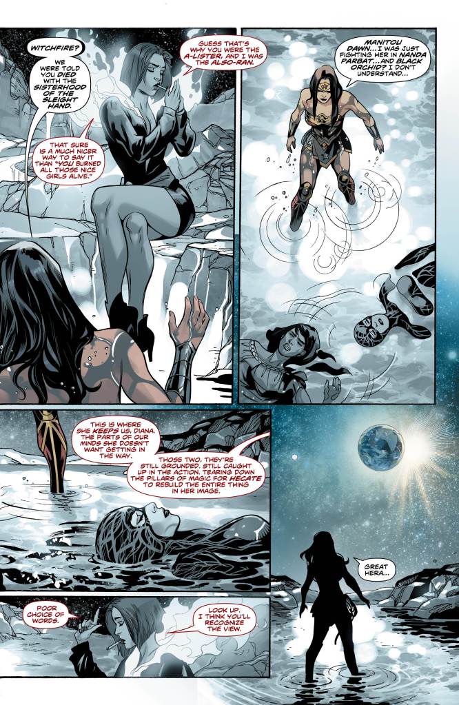 This issue opens with Diana lost in some form of purgatory, with the last remnants of her the last shreds of her holding on to existence while Hecate burns her body away with magic. It’s a great way to keep this a Wonder Woman issue while still giving more than adequate time to the rest of the team.
