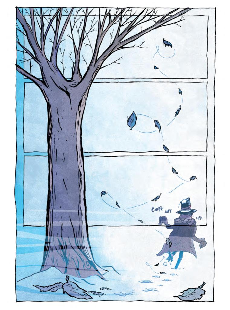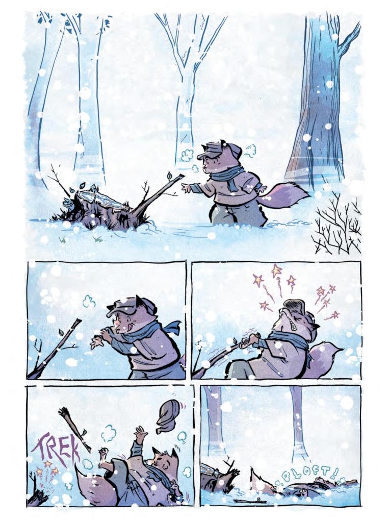 Utilising an entirely wordless style, Borges injects an impressive amount of feeling and emotion into his story as the top hat and suit-clad bird helps the youngest fox once the father falls ill, doing whatever he can to help his new-found ‘family’ survive the harsh winter.