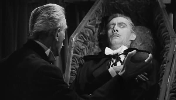 It’s when Dracula pops up as a fairground attraction that the wheels start to come off. Admittedly the effects of a nervous system and flesh growing back over his bones is pretty marvellous, but the finished product is the skinny and far from scary John Carradine and it just doesn’t work. His idea of playing the Count is to widen his eyes and glare, while having no physical presence at all. He’s neither intimidating or alluring, coming over more like a random toff with his top hat on at a jaunty angle.