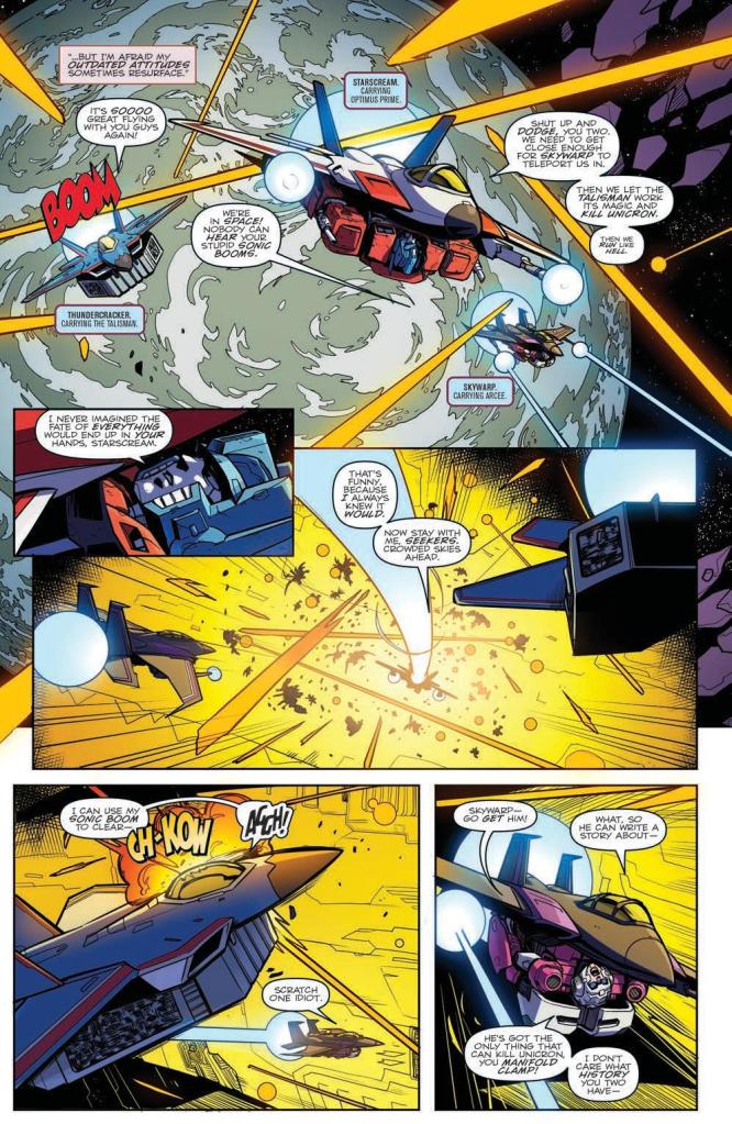 Following the past five issues of build-up, issue six kicks off the final stand, spending the first two-thirds of the comic delivering the comic book equivalent of a massive blockbuster finale. Across Earth, space, war fleets and Unicron himself, every major player in Barber’s stories come together to join battle against Unicron and his Maximal forces. Impressively, Barber somehow manages to give everyone time to shine with a series of goodbyes and sacrifices, twists, explosions, returns and reunions that play out in stunning fashion, delivering fittingly massive battles and touching moments to characters that we’ll only ever possibly see in this form once again.