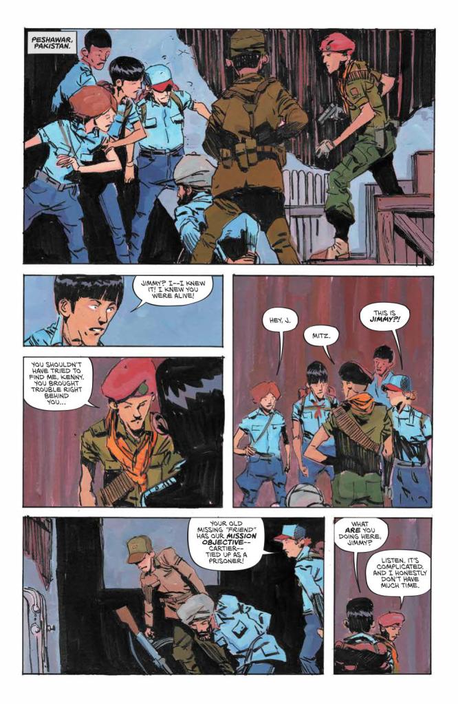 Following the shocking revelation at the end of the last issue that their former troop-mate Jimmy was in fact alive and well, the latest chapter of BOOM! Studios’ Black Badge sees Matt Kindt expanding the scope of his world and introducing us to the mysterious group known as “the Swabbies.”