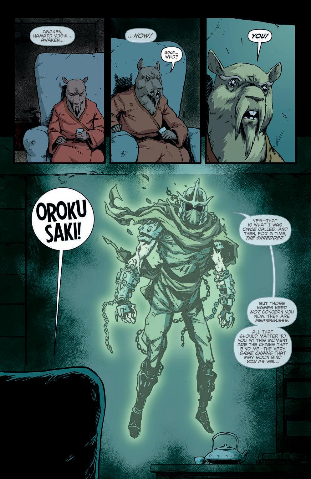 Since the shocking events of issue #50 where he killed his long-time rival Oroku Saki and took his place as leader of the Foot Clan, Splinter has been crying out for some real attention. Despite serving as the catalyst for some intriguing changes in the brothers themselves, Splinter has felt very much like a background force for quite some time now, almost like a plot device rather than a character in his own right.