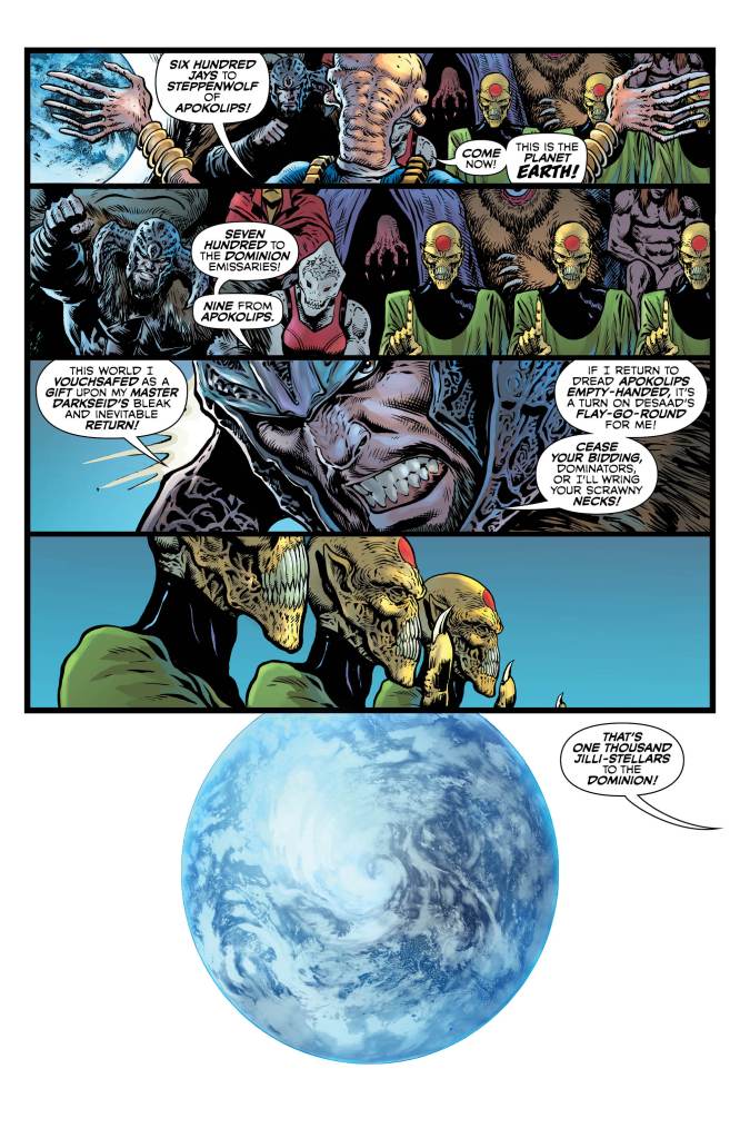 Grand Theft Planet! Earth has been stolen and put up for auction to the worst scum of the universe. Now it’s up to Hal Jordan and a small team of Green Lanterns to get Earth back, but with Apokolips, The Dominators and all manner of other high-level threats in the mix, can they pull off this mission? And while we’re at it, who is the mysterious Shepard and is he perhaps the most dangerous threat of them all?