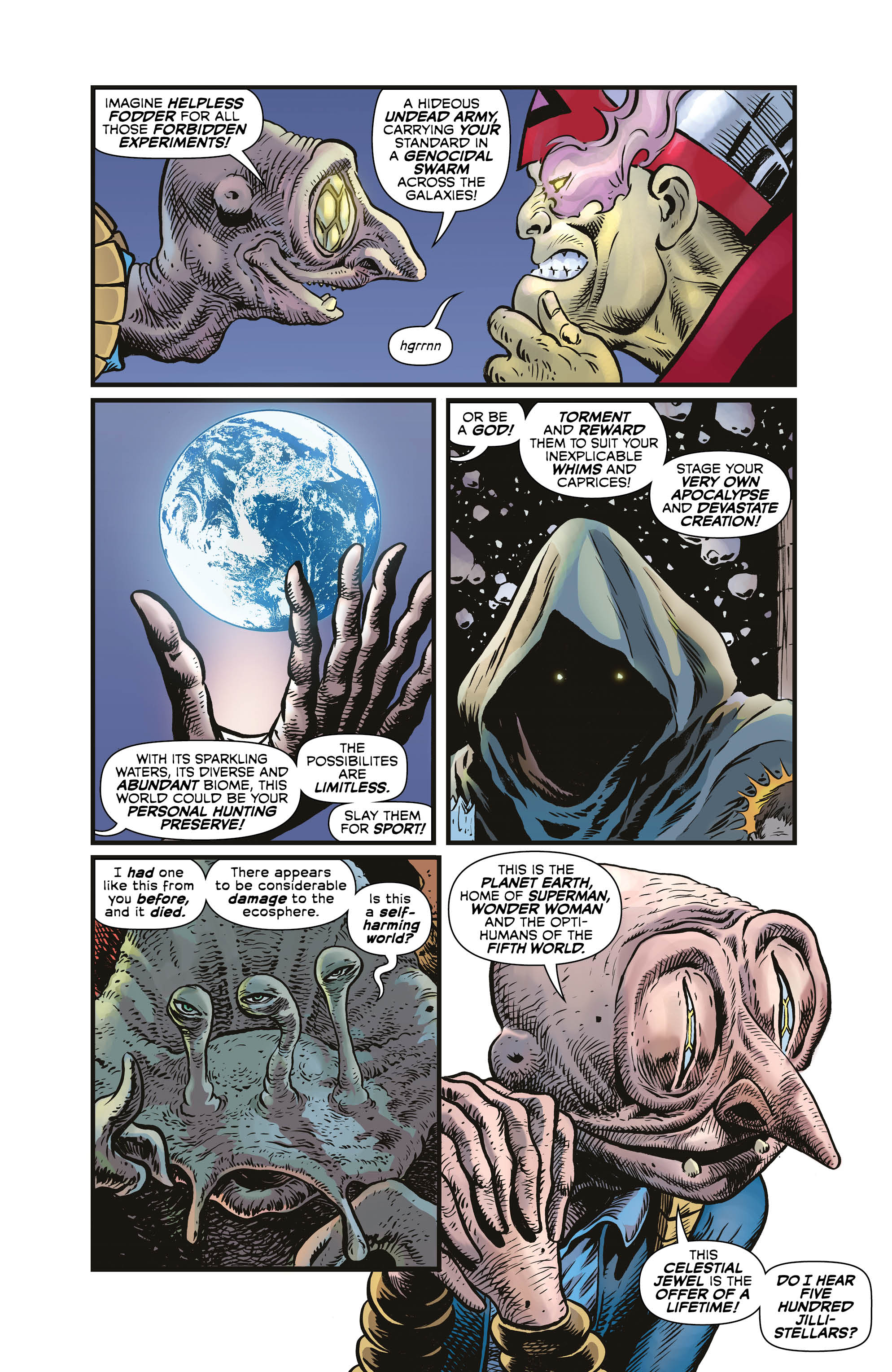 Grand Theft Planet! Earth has been stolen and put up for auction to the worst scum of the universe. Now it’s up to Hal Jordan and a small team of Green Lanterns to get Earth back, but with Apokolips, The Dominators and all manner of other high-level threats in the mix, can they pull off this mission? And while we’re at it, who is the mysterious Shepard and is he perhaps the most dangerous threat of them all?