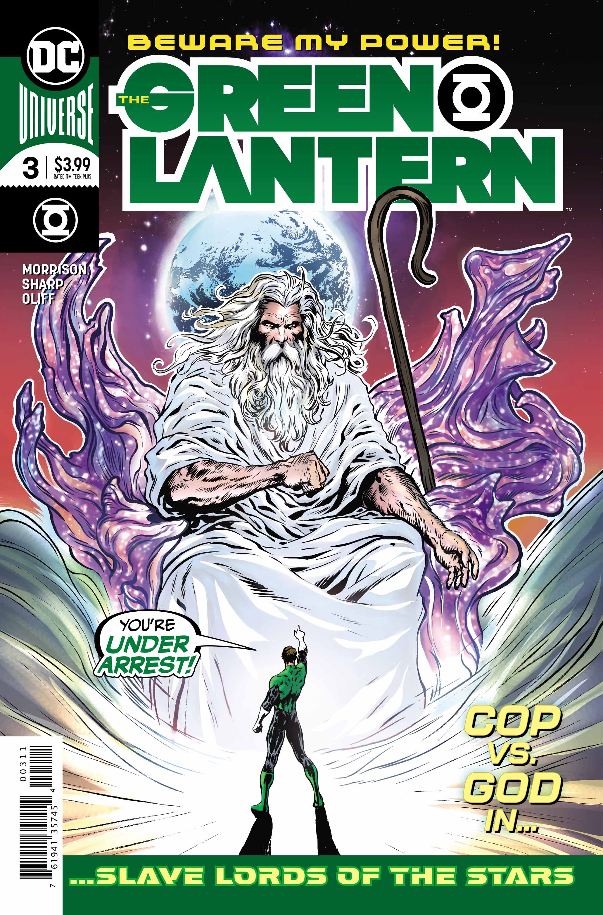 It’s time for another issue of Grant Morrison, Liam Sharp and Steve Oliff’s space police procedural. And, somewhat unsurprisingly considering the level of talent involved, this is spectacular. We get true ‘80s insanity here with Hal Jordan first breaking up an intergalactic black market deal before heading straight into a battle with what is basically God and putting a whole planet under arrest. IN theory, the insanity at work in this book simply should. not. Work, but because it’s Grant Morrison it is executed with an unmatched level of skill and class. No one else by Morrison can glide between outright absurd comedy and really dark character moments – which Hal Jordan has in spades here. With an ending that’s really shocking this book makes it clear that it’s willing to take Hal Jordan and the Green Lantern Corps into new and daring places.