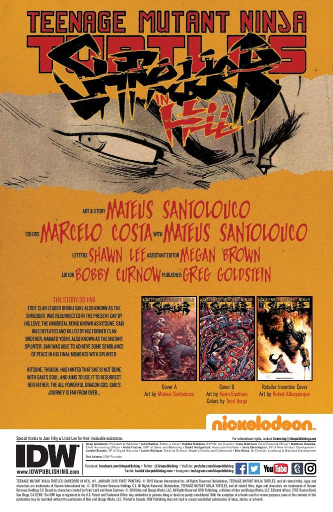 Santolouco clearly has some big ideas here, and does a solid job of laying things out in this first issue as Saki is taken back to the forests of his youth, coming face to face with the man (or rather, the rat) who led to his demise. It’s a series which is heavily immersed in the more supernatural and spiritual aspects of the TMNT universe, an approach which works incredibly well given the heavy influence of characters like Kitsune on the proceedings.