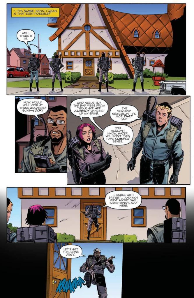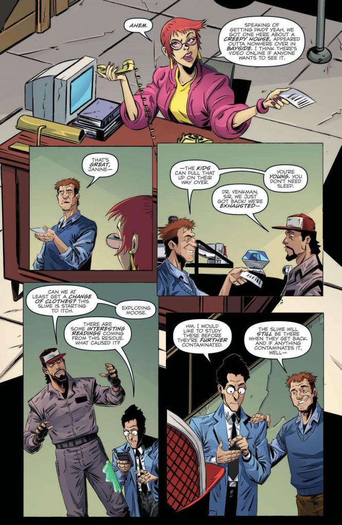 Look, if you’re not already familiar the Sanctum of Slime team, then apart from a brief character bio at the start of this issue you’re not really going to get to know much here. The focus in this issue is squarely on team leader Alan Crendall who, despite being a tad generic, is the member of the team with the most to do as he ends up working with the original ‘Busters. And, in spite of the somewhat lackluster leading man, this ends up as a classic Ghostbusters story with an inventive twist on a seemingly straightforward job.