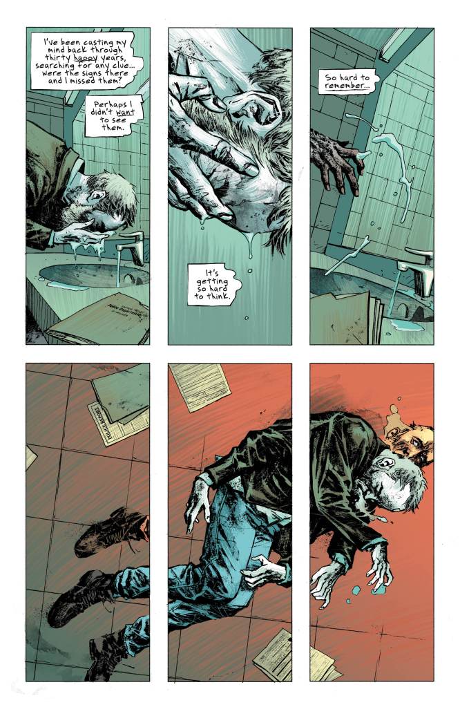 Oh, and speaking of those pages, thanks to the sterling efforts of Max Fimara, Sebastian Fiumara and Dave McCaig, then continue to be nothing less than absolute art. This new look for Lucifer has pulled it from the early 2000’s aesthetic to some ghoulishly dark nightmare, changing him from the dark echo of his angel brothers to something utterly terrifying and simultaneously stylish in his heavily Bowie ‘Man Who Fell To Earth’ garments. It’s a really great thing to see a character so well established having a complete new side to him with this off-putting and devilishly attractive style and grace.