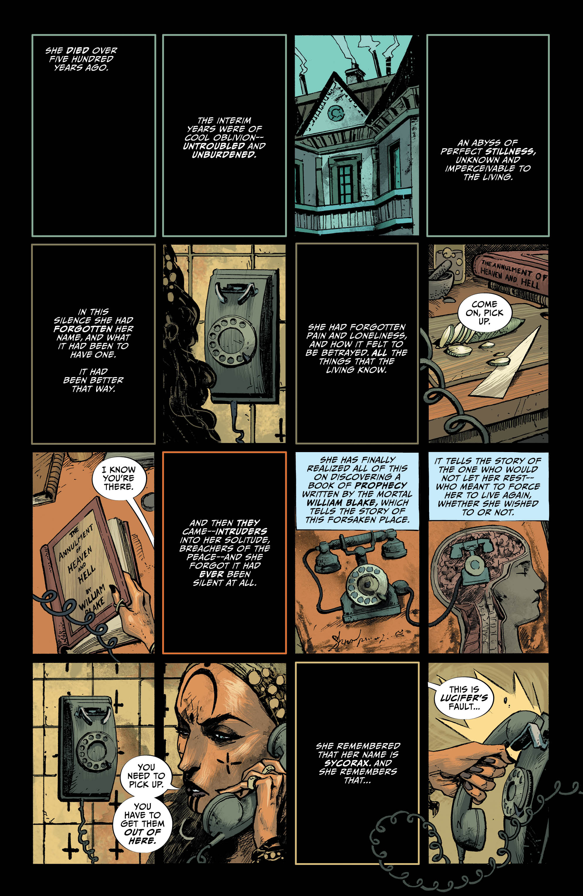 So how did Lucifer end up as the self-blinded beggar on some random plane of existence? Well, as we discover, the duo of witches from his past are the key to bridging this place and the outside world of former detective John Decker. Their search for a third sister mirrors his own search for his wife’s past, resulting in a surprising reveal that offers up even more questions about his grander role in the scheme of things.