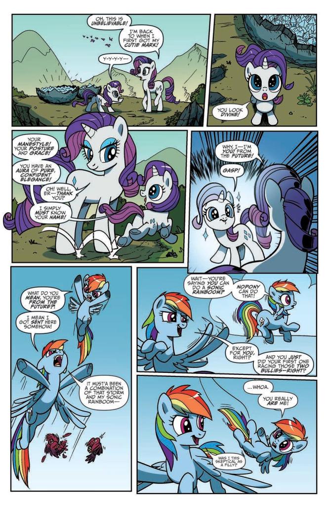 What does bug me is the lack of meaning behind the story. The 20/20 concept IDW has adopted has so far been used to show glimpses into the past and possible futures of their franchises in a more or less ambiguous morality tale type fashion. This isn’t quite the case here which is a real shame, because a My Little Pony comic, presumably aimed at a younger readership, is where stories about looking back or forward and contemplating growing up would absolutely shine.