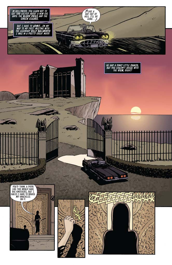 David Avallone isn’t a bad writer, in fact his previous outings for Dynamite have been really good, but I just found myself really underwhelmed with this issue. There was none of the charm we normally get with Elvira, and the traditional bawdy double entendres fell flat. Avallone did a great job on the previous Elvira story with her travels through time to meet famous literary horror writers and their nightmares, but it feels a bit like he’s on autopilot throughout this first issue. On the strength of Avallone’s previous work I’m going to be generous and say that, if you want to read this, I’d pick it up in Trade Paperback format as, for me, I think it would be better to hit the whole story at once rather than try to read it piecemeal.