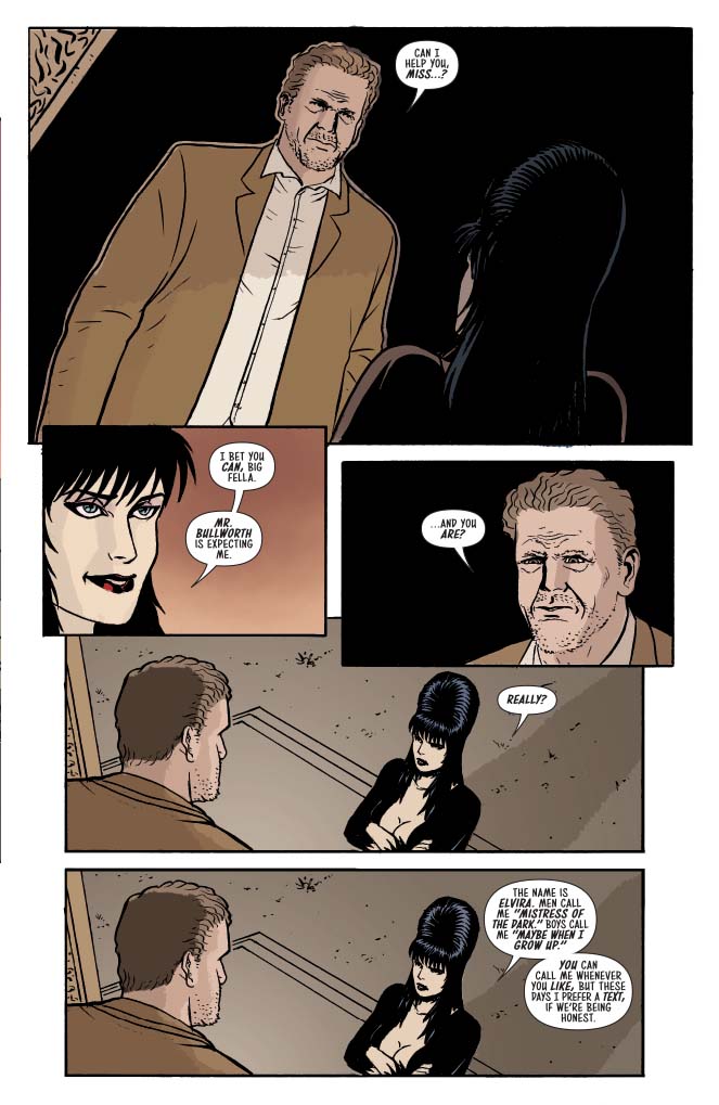 Frank Strukan’s artwork is a massive let down, and unlike Dave Acosta’s work on the last Elvira series, is, for me, bland and uninspiring. It’s quite tough to make a legendary bombshell and renowned temptress dull and boring but Strukan has achieved it almost effortlessly. I think the one saving grace for this series may be the cover art which is provided by the legendary Francesco Francavilla.