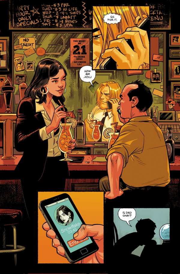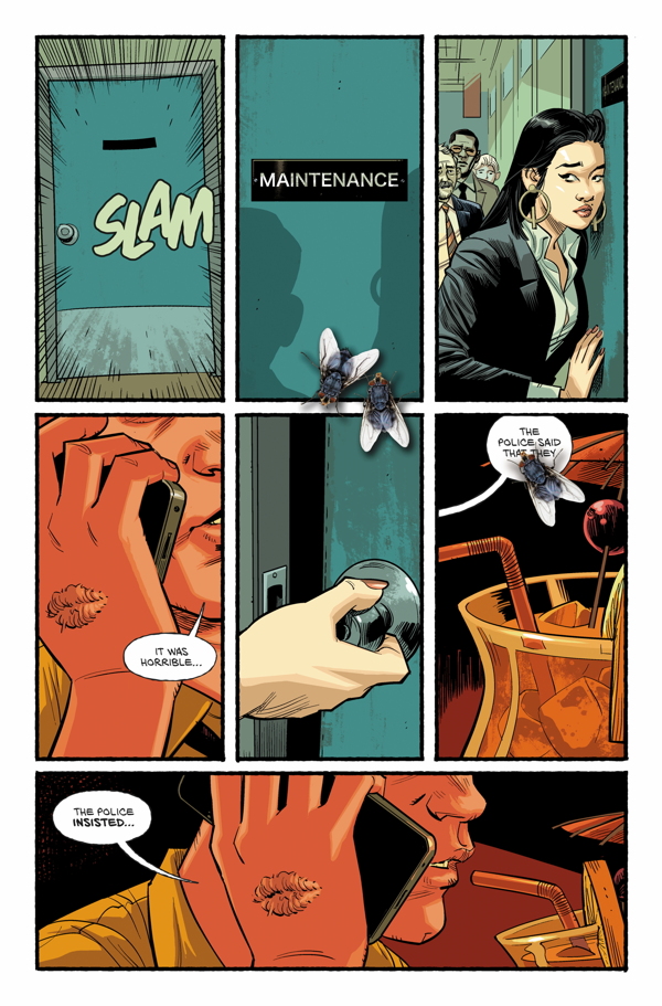 Palahniuk doesn’t give us what we want here but rather what we need. Namely a story that makes the reader think not just about what’s going on but also about their own expectations of the archetypes portrayed in the story; the flies buzzing on the page hinting at a character’s intent; the name drop of “snowflake” for a caller I.D.; a subtle tattoo on the neck. All raising enough questions to leave us staring at every panel with the steely focus of a seasoned detective combing a crime scene for clues.