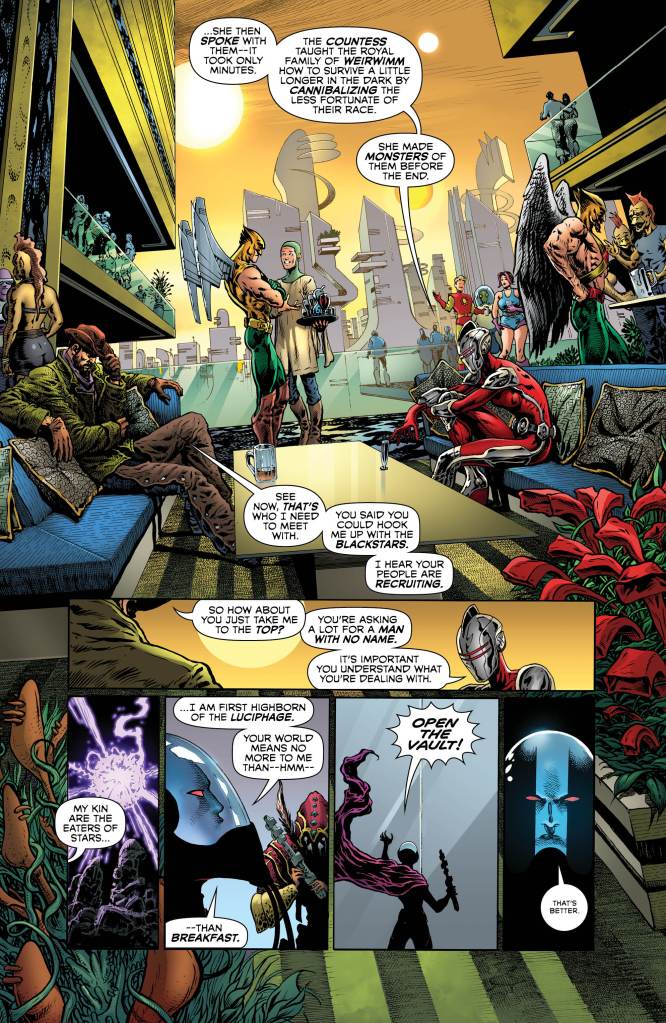 Stop me if you’ve heard this one before. Two people sit across from each other at a bad, both with a tale to tell, each one move away from killing each other. These are tales of The Green Lantern Corps and The Blackstars. And most importantly this is how Hal Jordan went from one into the other. This is how Hal Jordan betrayed the Green Lantern Corps.