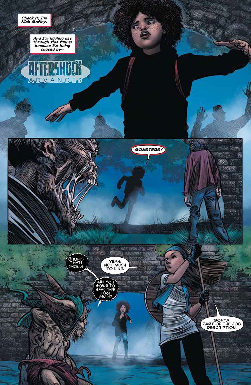 The first two issues of AfterShock’s Lollipop Kids are a good demonstration of how a great idea can end up buried under the heavy effort of world-building. The series boasts a strong premise which ties folklore and fairy-tales with modern-day sensibility, magical warfare with contemporary issues, and mythic creatures with relatable heroes.