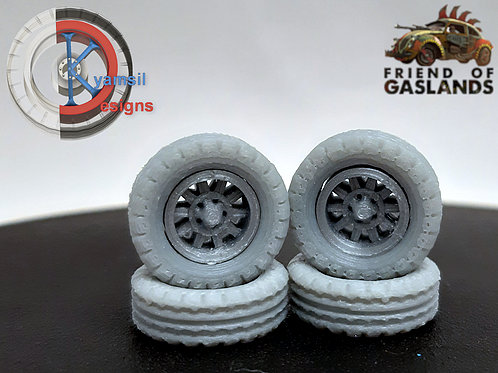 Makers of a range of 3-D printed wheels, tyres, springs and shocks, customising with Kyamsil’s stuff is an absolute breeze. I decided to try out a set of simple conversions using their stuff, cutting through the axles of Hot Wheel with my usual snips, threading a flattened paperclip through and mounting new wheels.