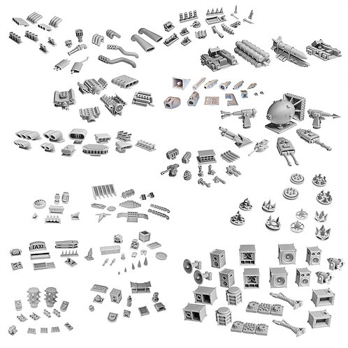 However the real highlight is the massive range of resin components from Zinge. From ridiculous big guns to sneaky pop-out spy guns, enormous engines and fat exhausts, you can trick out your ride pretty much any way you can imagine: even strap on a set of decks, DJ and doofs, if you fancy, complete with flaming axe. With sets of a dozen upgrades starting just shy of £5, and bargain bundles available, you’ve got a whole host of options to really bring the pain.