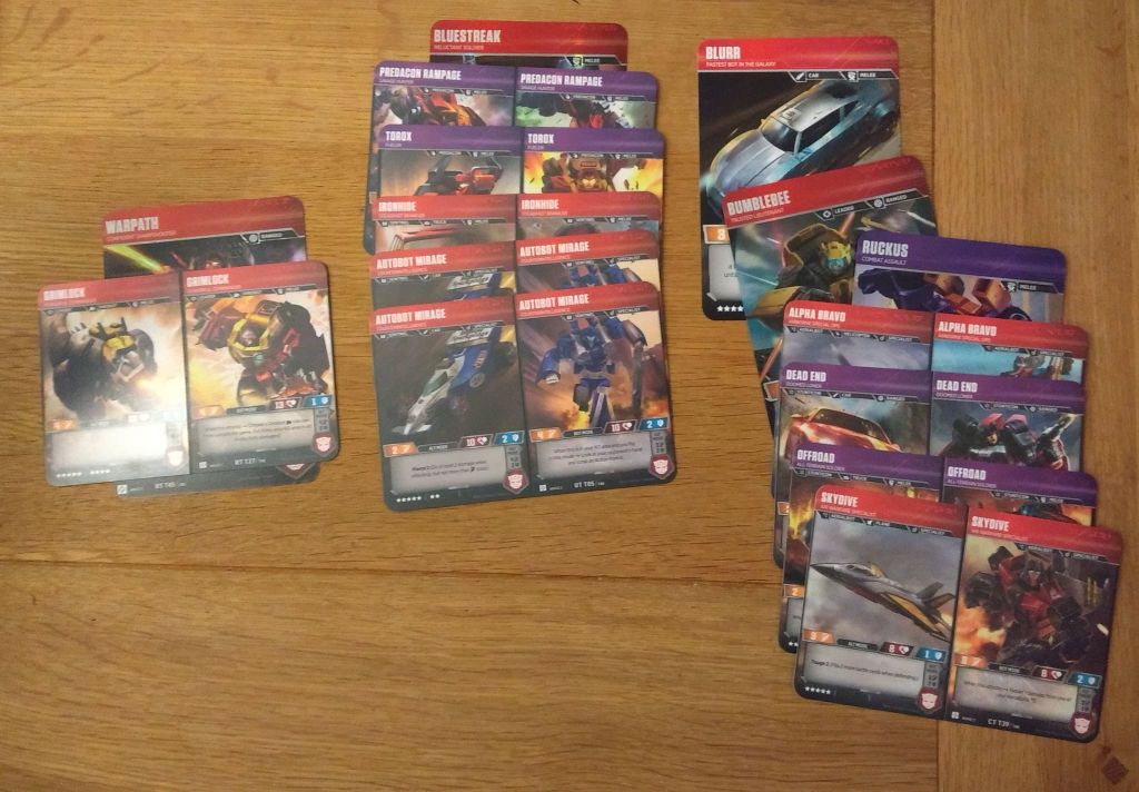 The Starter Set retails for £15.99, with a 4-strong force of oversized (and very shiny) Autobots and a 40-card battle deck. This is a standard-sized team and deck, and properly playable out of the box as a two-player intro experience, albeit one that is over pretty quickly.