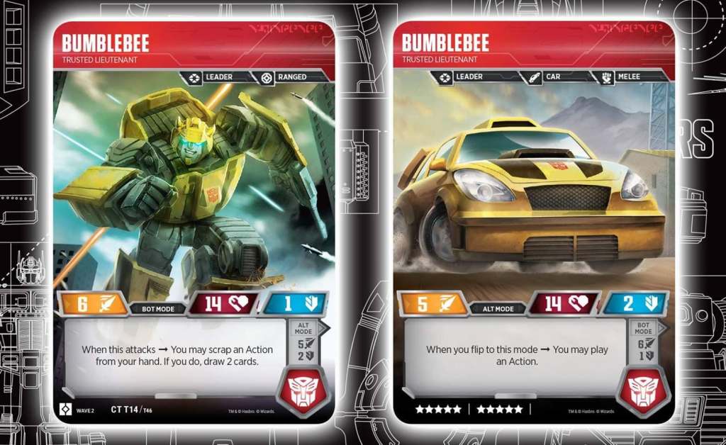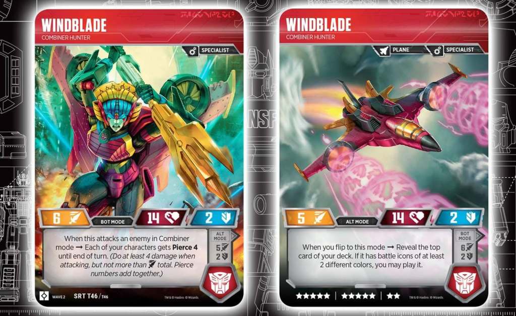 Wave 2 introduces a few new mechanics. I’ll get to the Combiners in a mo, but whilst we’re on the subject of keywords, we now gain Brave (must be attacked), Stealth (can’t be attacked) and Plan (allows you to place cards on top of your deck). Again, not an over-abundance, but enough to keep things varied. It remains to be seen if this goes down the MTG route with thematic keywords rotation thorough different sets; certainly, Brave and Stealth have definite impact from the first turn of the game, as it limits your opponent’s choices and potential first turn advantage. Wave 2 also includes battle cards with star ratings (so they add to your team’s maximum) and the ability to pull cards from outside of the game – which is… odd, and I’m not entirely convinced by (at least for battle cards).