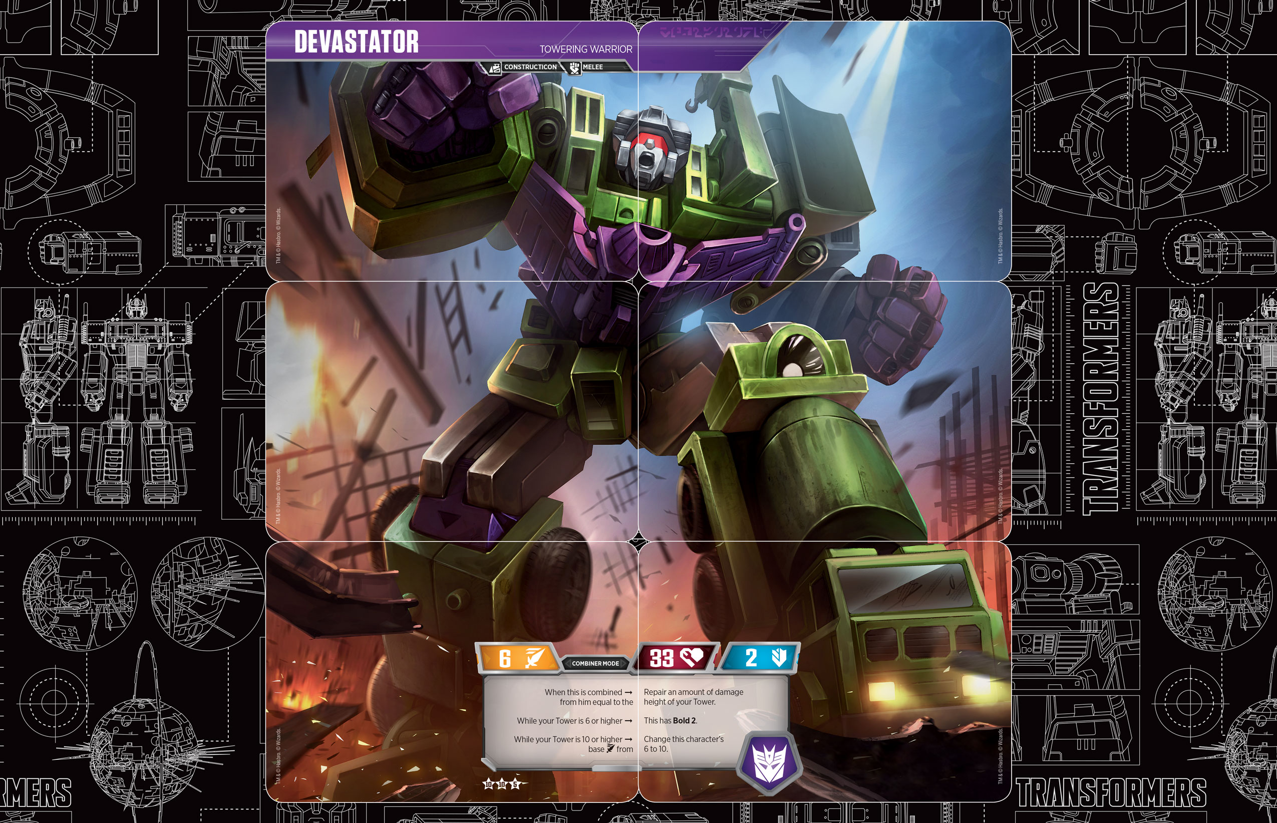 In addition to the first expansion, Rise of the Combiners (due March 1st), brings with it a Decepticon starter (due end of March), specifically based around those legends the Constructions – Prepare to Bear Witness to the Might of DEVASTATOR!