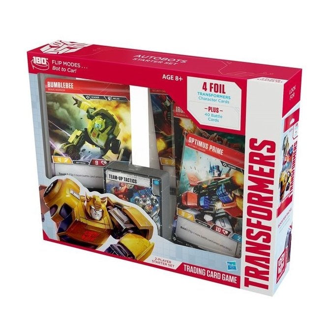 The Starter Set retails for £15.99, with a 4-strong force of oversized (and very shiny) Autobots and a 40-card battle deck. This is a standard-sized team and deck, and properly playable out of the box as a two-player intro experience, albeit one that is over pretty quickly.