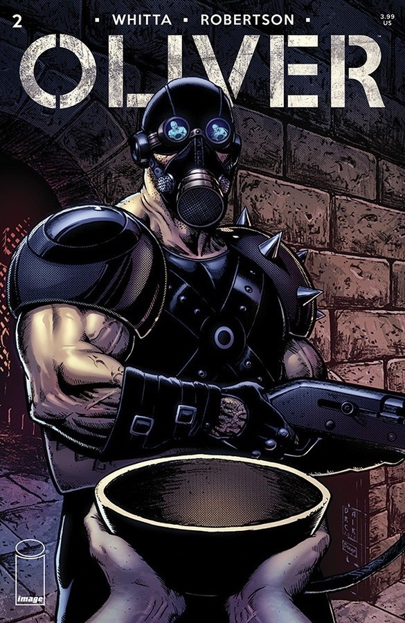 Last month I got the chance to read the debut issue of Whitta et al.’s new post-apocalyptic Dickensian inspired superhero story, and was very much a fan from the off. The pairing of Robertson and Rodriguez seemed like a perfect fit for the tone of the story and Bowland’s lettering rounded off the visual treats nicely. With high hopes for the series moving forward I sat down with this month’s issue, and it’s safe to say I’m glad I did. For anyone who hasn’t read or seen an adaptation of Oliver, there may be some minor spoilers ahead. In saying that, this definitely ain’t a Lionel Bart ditty.