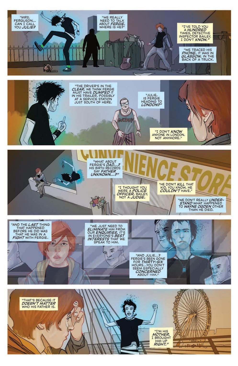 With his sarcastic companion, the ghost of dead Sex Pistols bassist Sid Vicious in tow, he has made his way down south to London to track down his long-lost dad and try to figure out just what the hell is happening to him. Back home, his crush Natalie is about to begin on a journey of her own. She’s attached to Fergie in some way and she is going to find out how in any way she can. And while all this is happening, a mysterious slick-haired baddie emerges from the shadows with his own murderous agenda in mind for our spotty ginger hero, leaving a trail of bodies in his wake.