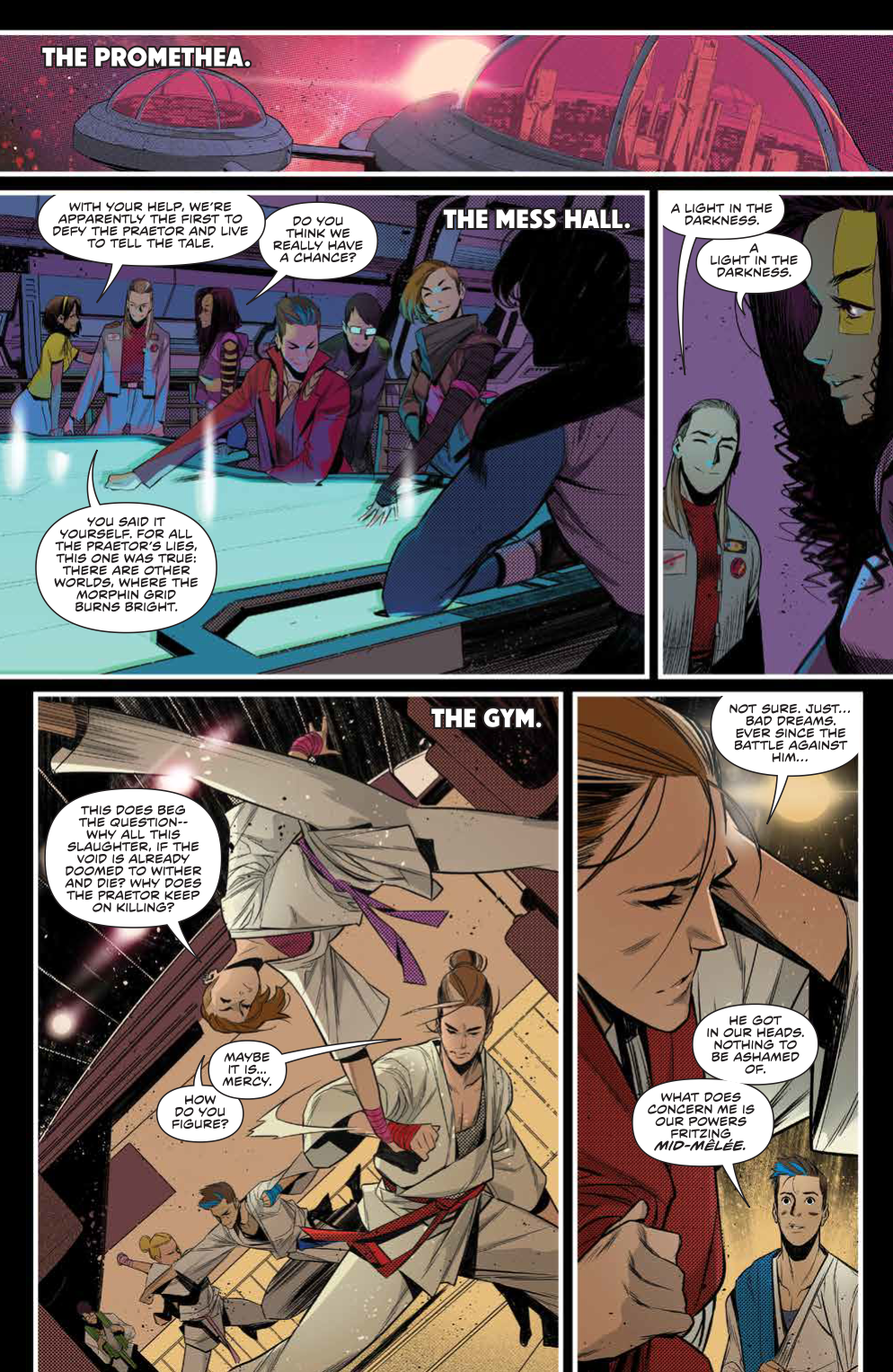 Even though action is light, Simone Di Meo and Walter Baiamonte still turn out the amazing quality of artwork that we’ve all come to expect by now. We really get the emotions here from Di Meo and it helps to make the more dramatic parts of the story with Mike and Tanya feel even more impactful. Also, absolutely nobody makes space look better than Walter Baiamonte. His colours are an absolute treat for the eyes and I’m honestly going to be heartbroken when this team finishes up.