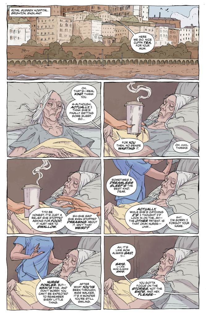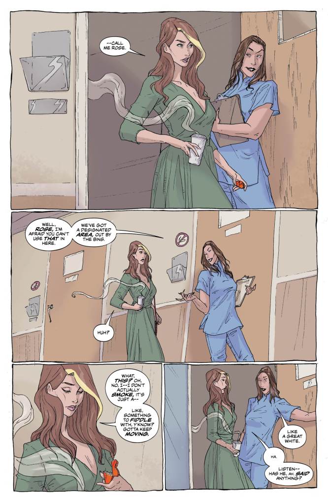 Without a single mention of what has gone on before now the story is opened with another member of Vertigo alumni, Rose Walker, as she joins another familiar face to regale them with her current predicament. Ever since a long forgotten deal 30 years ago she hasn’t aged at all, going from one heart-breaking love to the next in a seemingly unending pattern, all while still caring for her mother and daughter. That is however until she meets a strange white figure who seems to change all that. Like her, this man is not touched by time and like her he is a slave to love. But knowing that her heart is destined to be broken she does what any loving mother would. She introduces him to her daughter and a whirlwind romance unfolds.