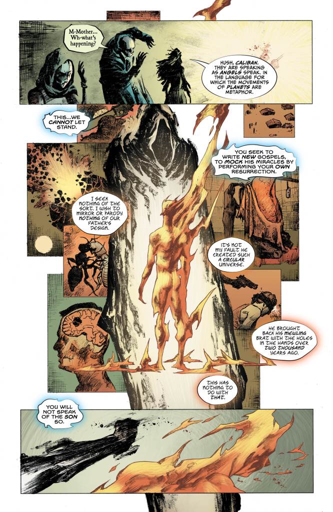 So we’re finally back on Earth, but it was never really going to be that easy was it? As he himself said last issue, resurrection is supposedly a matter for the gods, and his feathered children don’t take too kindly to it.
