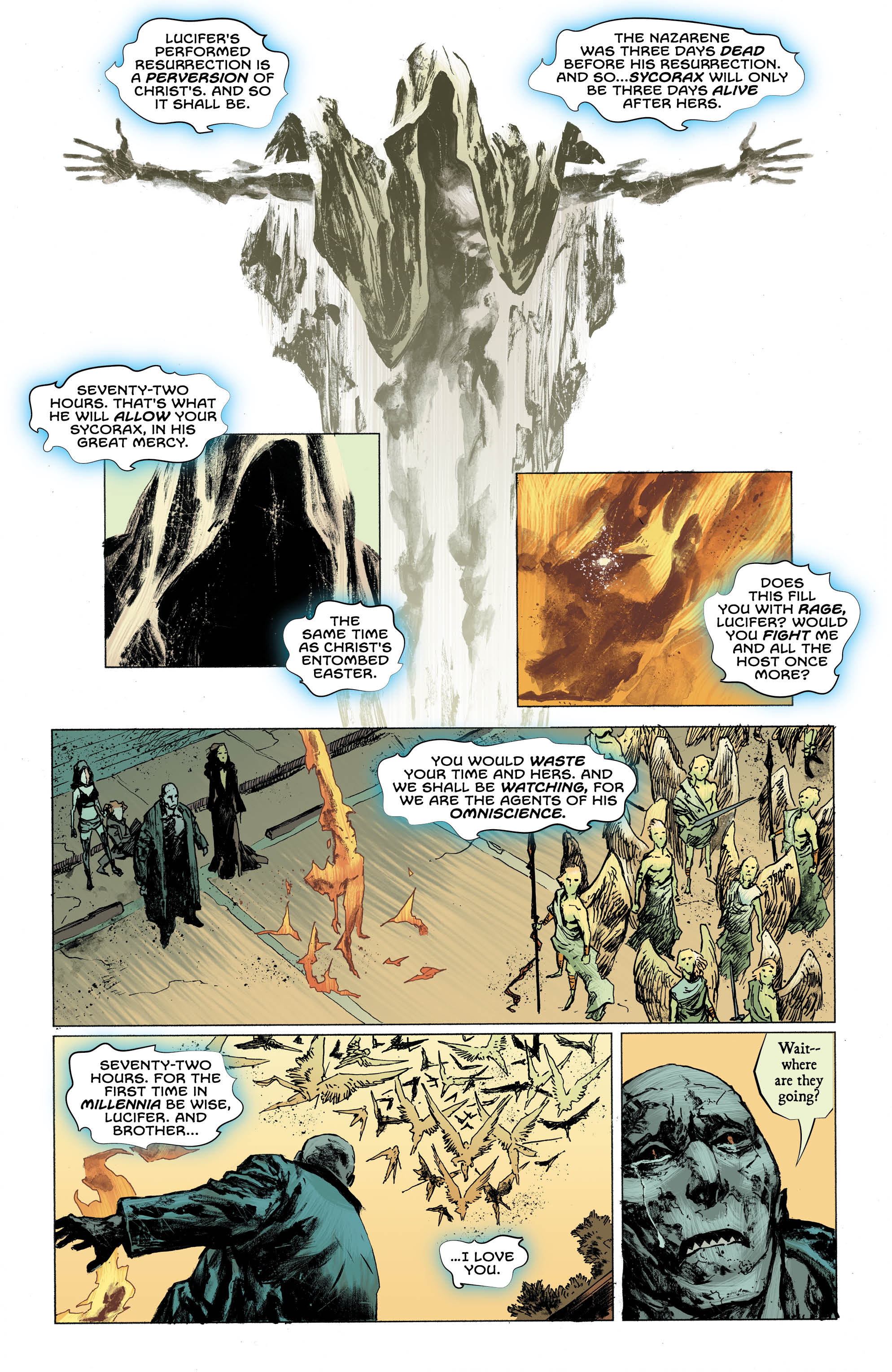 Upon Lucifer’s return from the psyche of his former lover, he finds himself bombarded with a horde of angels lead by his sanctimonious brother Raquel. They are bored of Lucifer and his continuously blasphemous ways, with the recent resurrection of Sycorax proving to be a step too far. After a prolonged chat with his brother, Lucifer is given the days of life – to match the days before the rebirth of Christ – before he must take from Sycorax that which should never have been given. Weakened by his escape and in a world without influence, what is our fallen angel to do?