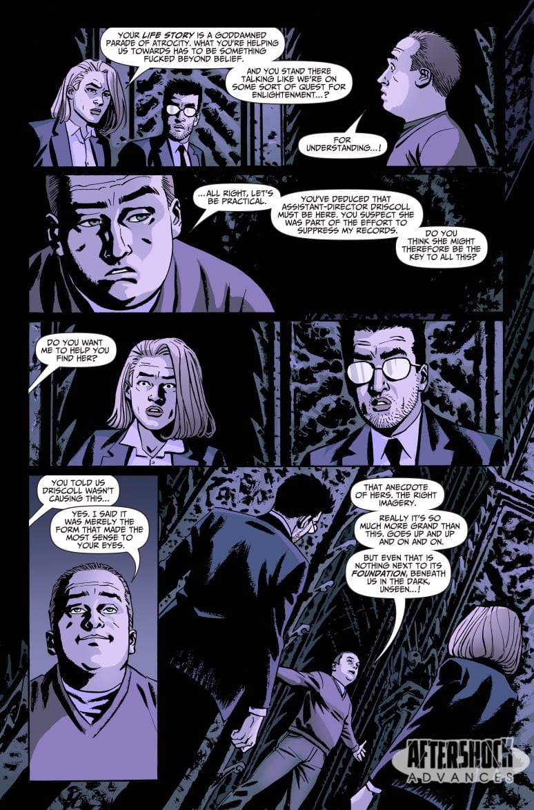 Shaw and McGregor continue to wander the shadowy vaulted halls of Notre Dame, unwillingly guided by Carnahan, looking for answers and an escape from their nightmare, when a figure from McGregor’s past appears to torment and horrify the pair.