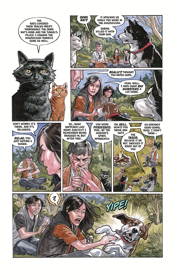 This is a series that already has a decade of world building and adventure under its belt, not to mention eight Eisner awards. It’s even had a Hellboy crossover, for Pete’s sake! So with sincere apologies to Evan Dorkin and Jill Thompson for being so incredibly late to this party, let me tell you why Beasts of Burden might be my new favourite comic.