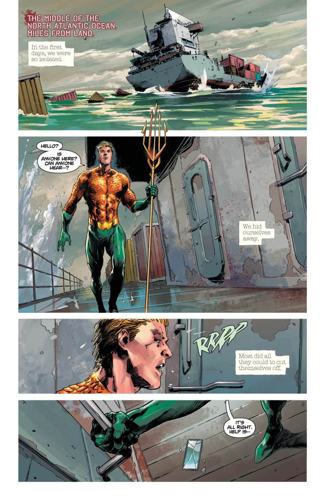 Last issue we learnt about how the Anti-Life Equation turned against Darkseid and quite literally went viral. Transmitted through the Internet we instantly lost millions as the world was hit with a virus that craved nothing less than the end of life. No hunger for brains, no shuffling, just pure death attacking an unprepared world. It has already claimed some of our best heroes and, as we see in the first few pages of this second issue, even more than we first thought. Not even the World’s Greatest Detective can fend off the threat. Well, at least not without pointing the surviving heroes in the right direction.