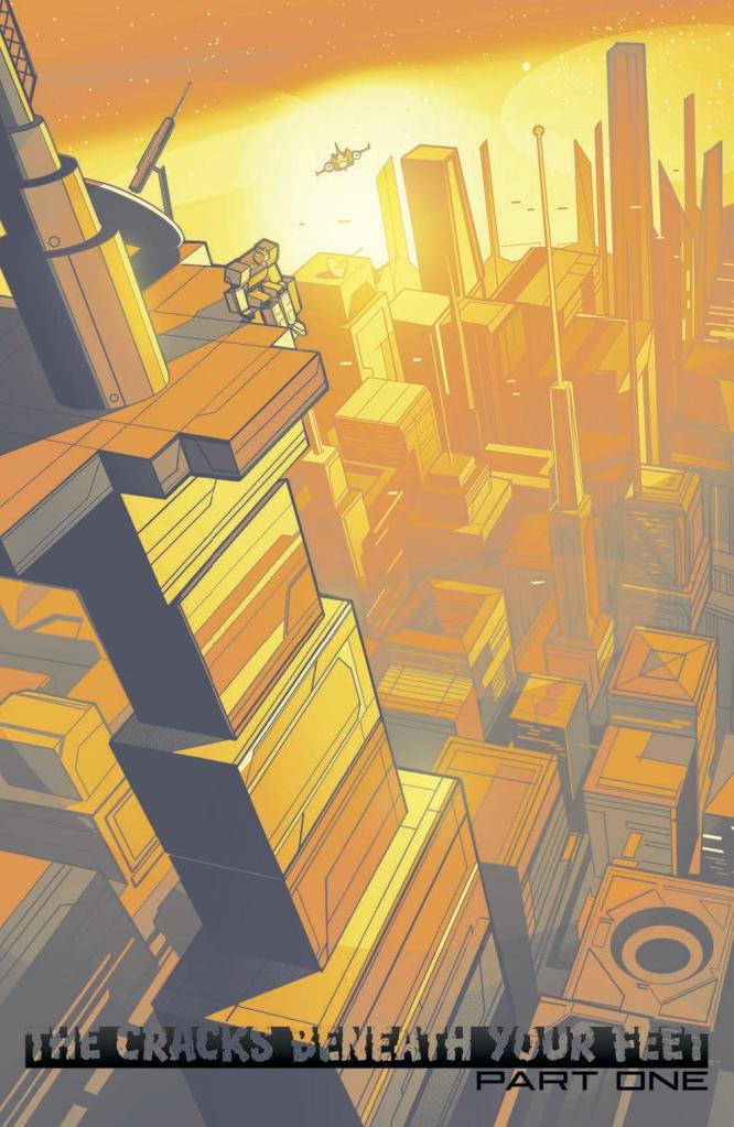 This issue kicks off “The Cracks beneath your Feet”, picking up where issue #5 left off (it’s fair to say that the interlude issue #6 offered was somewhat divisive, even with the legendary Beth McGuire-Smith joining the team.) We find a shocked, numb Bumblebee staring over a sun-drenched Cybertronian cityscape. It’s a beautiful, soulful opening that conveys an impressive amount of emotion, whilst also deftly conveying his friendship with Windblade (which previously had seemed almost antagonistic). Hernandez’s art and Lafuente’s colours work together beautifully to tell the story, propelling the narrative forwards. Having a stable of artists working on the comic feels like it shouldn’t work, but we’ve reached the point where their depictions of characters (iconic or otherwise) are on-point, tied together by a consistent palette and approach from Lafuente and Burcham.