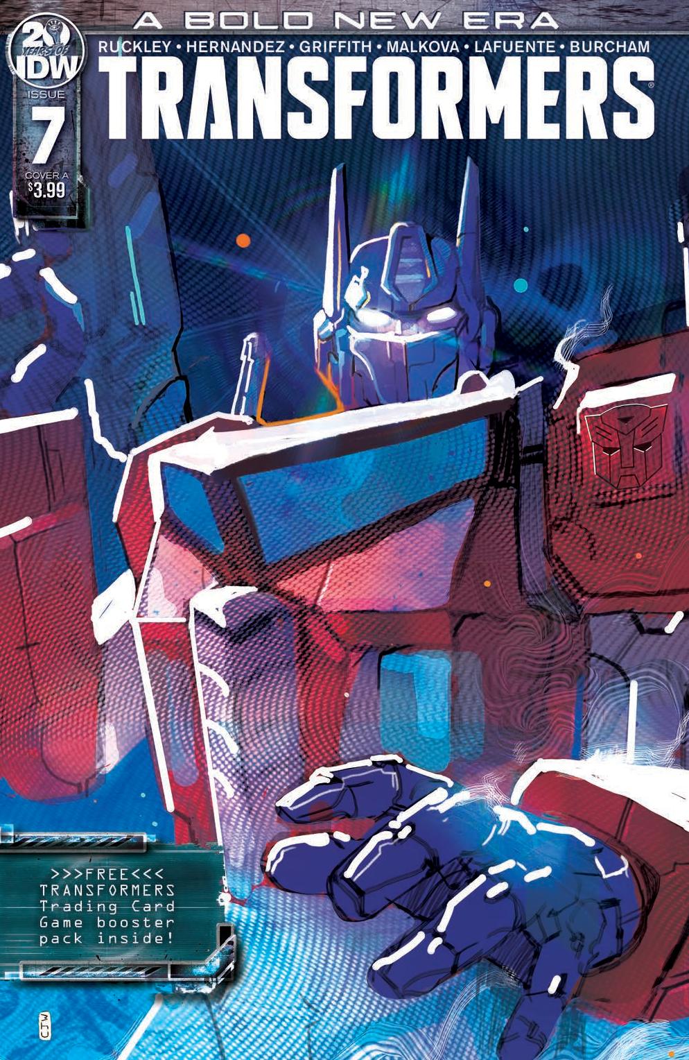 Christian Ward knocks it out the park on the cover for this issue, with the Siege-style Pax apparently being scanned; and thought it’s not often that I go out of my way to hunt for variant covers, but both Riamondelli’s B Cover (of Bumblebee perched over the cityscape) and Guido Guidi’s gloriously retro Elita-1 C Cover are a delight. As if that’s not enough, you get a booster from Wave 1 of the excellent Transformers TCG (which we have been getting very excited about) for free in with this issue! Now there’s an incentive.