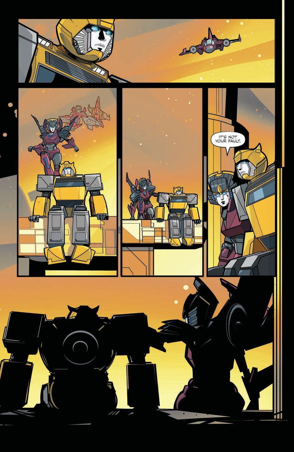 This issue kicks off “The Cracks beneath your Feet”, picking up where issue #5 left off (it’s fair to say that the interlude issue #6 offered was somewhat divisive, even with the legendary Beth McGuire-Smith joining the team.) We find a shocked, numb Bumblebee staring over a sun-drenched Cybertronian cityscape. It’s a beautiful, soulful opening that conveys an impressive amount of emotion, whilst also deftly conveying his friendship with Windblade (which previously had seemed almost antagonistic). Hernandez’s art and Lafuente’s colours work together beautifully to tell the story, propelling the narrative forwards. Having a stable of artists working on the comic feels like it shouldn’t work, but we’ve reached the point where their depictions of characters (iconic or otherwise) are on-point, tied together by a consistent palette and approach from Lafuente and Burcham.