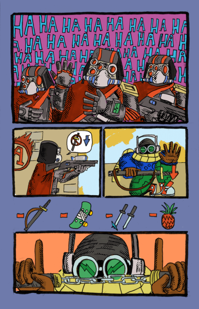 Fast forward to 2019, and Nick – as part of the newly formed Gonzo Industrial – has launched a Kickstarter for the 32-page, full colour second issue of the series.