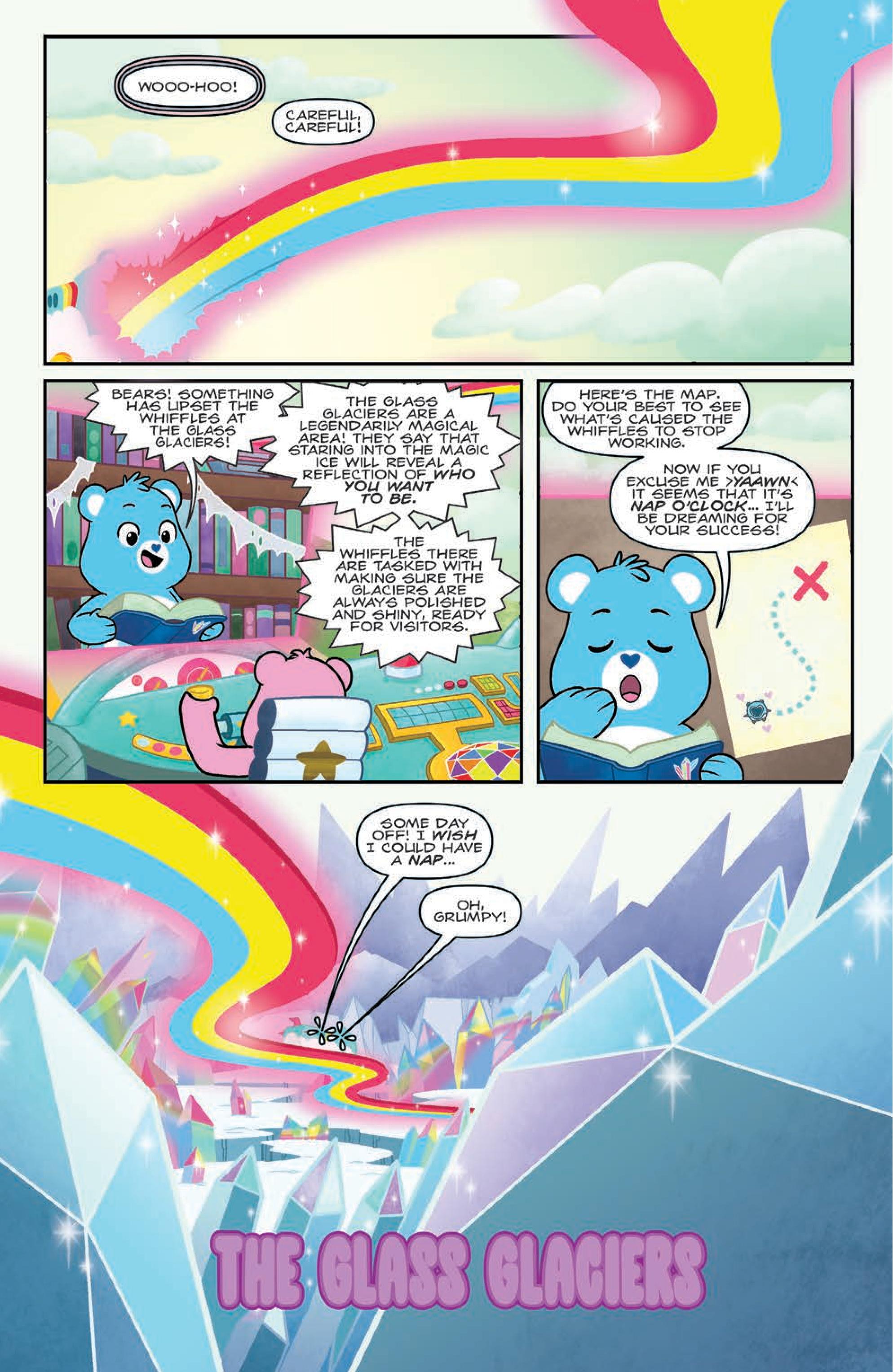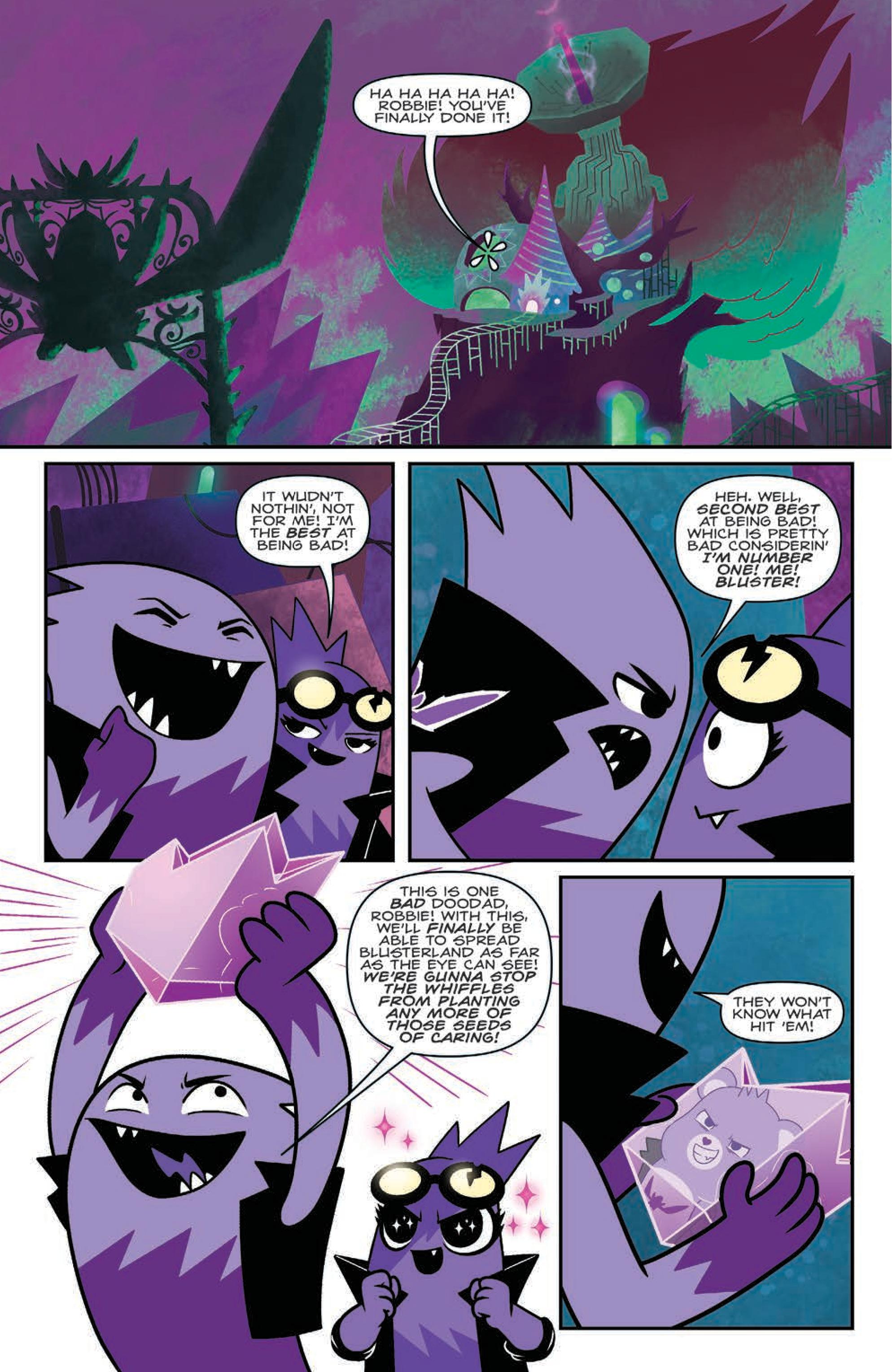 Story-wise, it’s your usual Saturday morning cartoon plot of a baddie, in this case Bluster, and a foul plan to destroy the goodies. There are strange goings on in the Silver Lining at the Glass Glaciers, and instead of magically reflecting who you want to be, the reflections are causing ructions with the Whiffles, which means no planting of seeds of care, which its bad news for Care-a-Lot. Erman and Shammas are obviously working with established canon, but the cutesy nomenclature and overly sweet sharing and caring isn’t used as a crutch. At its core there is a good fantasy concept here, and I found myself being able to enjoy some of the humour whilst also being given a character I could empathise with in Grumpy Bear.