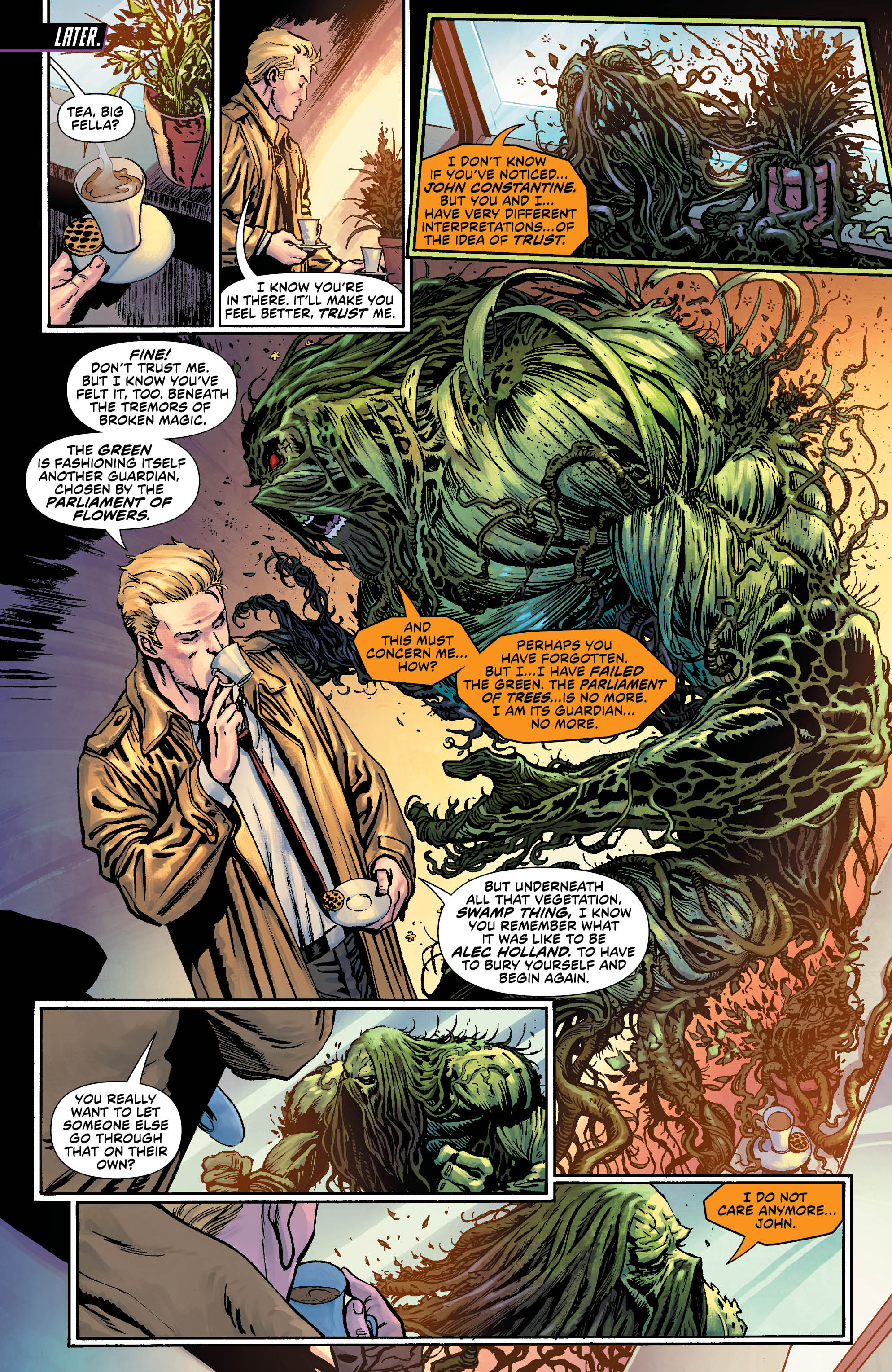 Reading this annual honestly felt like picking up a solo Swamp Thing title, albeit one crossed with the writing tones of the recent Sandman Universe comics. At the behest of Constantine, Swamp Thing reflects on his loss of connection to The Green. Without a champion in place, a new human must be chosen, which is process Swamp Thing remembers all too well. He sets off in search of this new Lord of the Green, only to discover that haven’t exactly picked the most stable of candidates.