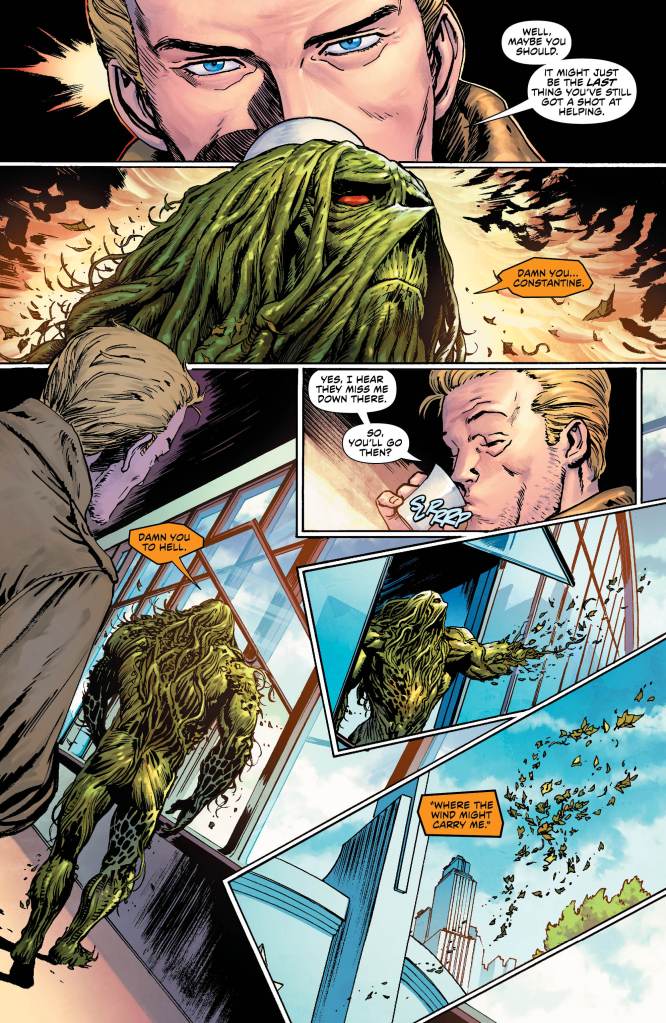 The story follows two separate storyline threads, one part following Swamp Thing and the other following the tragedy of the new human picked to be the champion of The Green. It was great to see another character driven story, and also a little surprising given the action-packed nature of the recent issues. It feels like the creators are taking a breather to really explore Swamp Thing, putting him squarely in the spotlight while still tying it to the JLD team with Constantine. Framing the gradual reveal of the new character with themes of loss and grief was a particularly stand-out point for me.