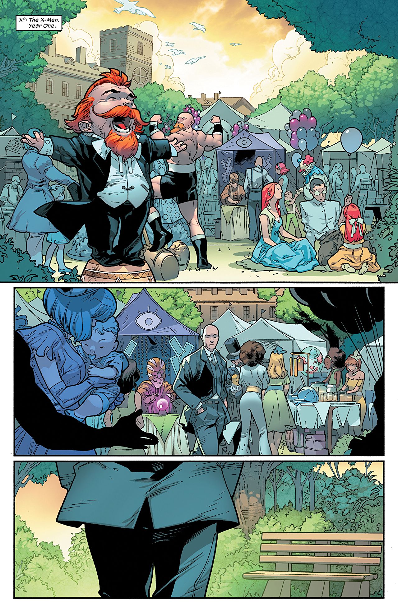 The Year One story reunites Moira MacTaggert and a walking Charles Xavier on a bench at a fairground. Their conversation quickly goes from light-hearted to ominous when she reveals that this isn’t the first time the two have met.