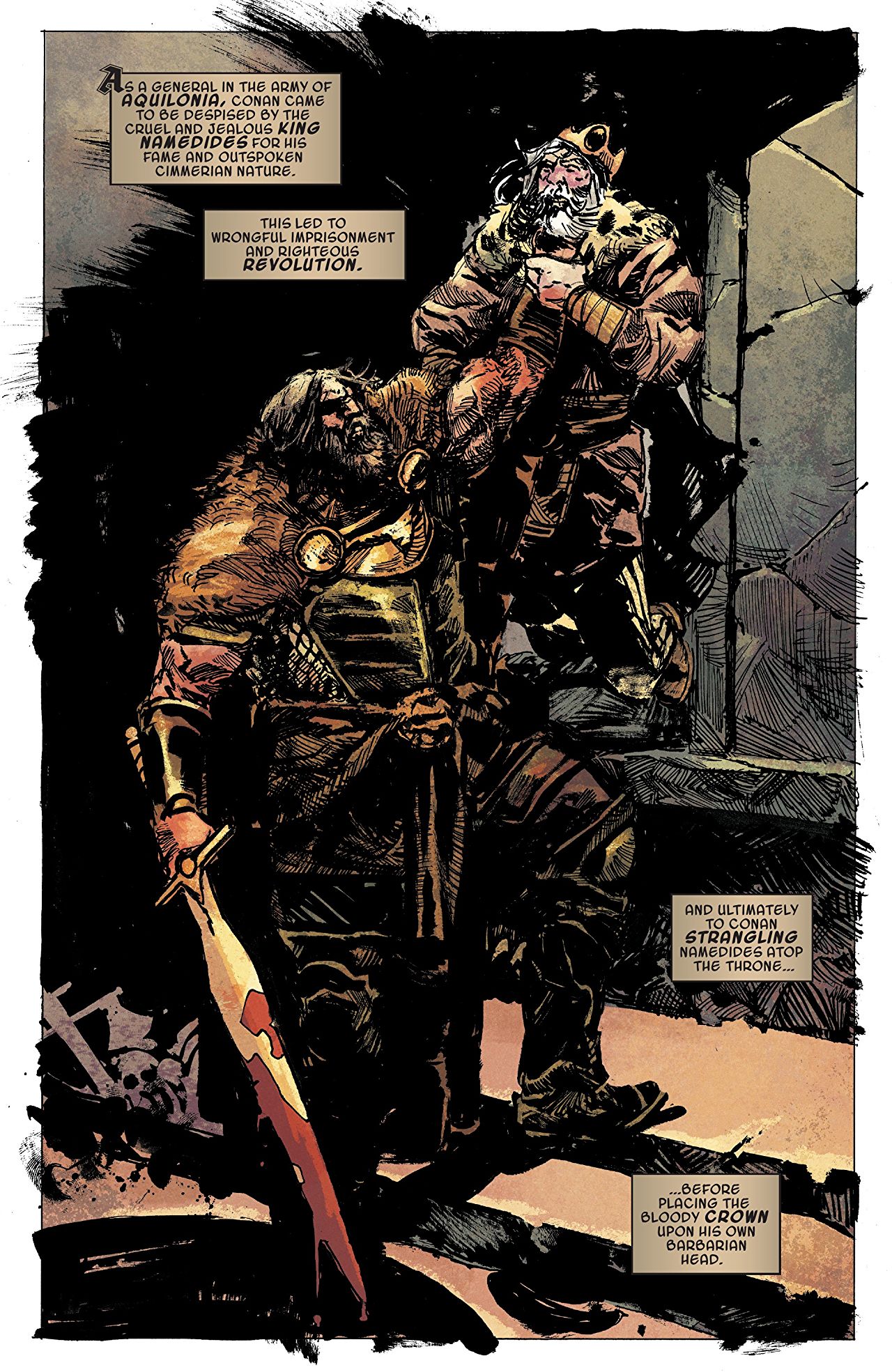 The series also utilises an incredibly reader friendly approach, featuring a succession of stand-alone stories covering different periods of Conan’s life, from wide-eyed youngster to grizzled and battle-scarred King. All these disparate events are tied together by a common thread; Conan’s impending death at the hands of The Crimson Witch and the servants of the Blood God Razazel, who have been watching over him for decades, allowing the ‘value’ of his soul to increase with each near-death experience he survives.