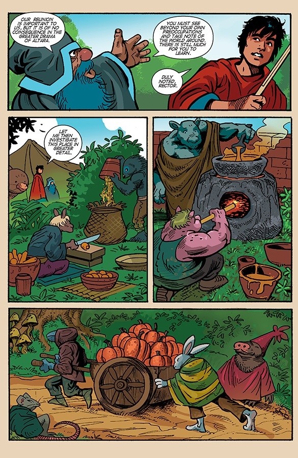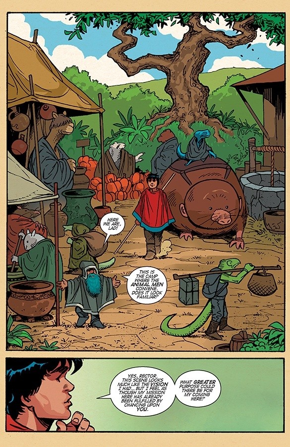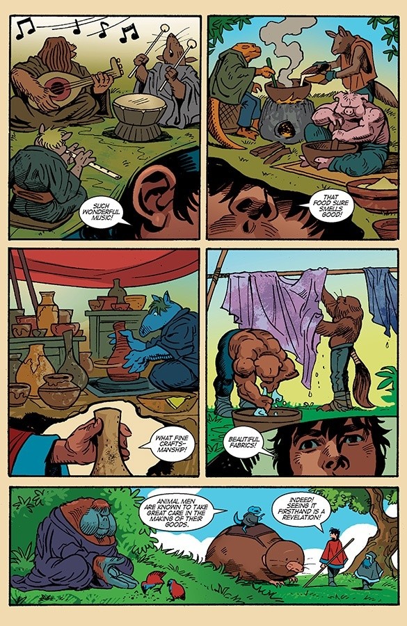 Last month, the pesky inconvenience of my getting married unfortunately prevented me from having time to review issue #3 of Gogor. Happily, I’ve been given the opportunity to talk to you about issue #4 and I’m so glad because this is a great series. There’s a good all-ages appeal to this tale as the narrative works on several levels. You can easily take this series at face value and just enjoy it as a fantasy adventure, much in the Jim Henson mould of storytelling. Alternatively, as a more mature *cough* reader, you can appreciate the sometimes subtle and sometimes incredibly blatant socio-political commentary.