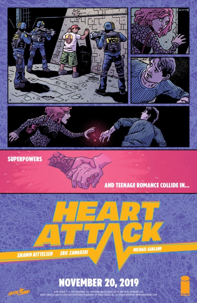 Image Comics and Skybound Entertainment have dropped details of HEART ATTACK, a brand new action-packed series from writer Shawn Kittelsen (Mortal Kombat 11) and Eric Zawadzki (The Dregs, Eternal), set to hit shelves this November.