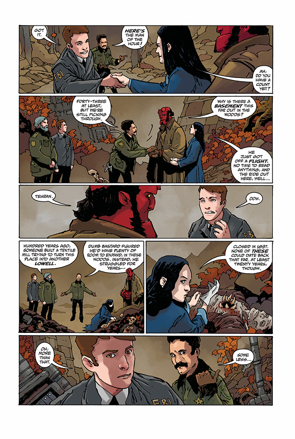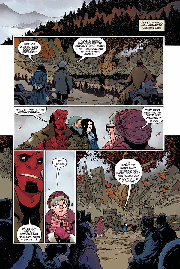 People have been going missing from Tatoskok Falls, New Hampshire for decades. When those same people are found dead in some old ruins deep in the woods, the question of where they are has been answered. However, the mystery of just how they got there and what the ritualistic nature of their deaths means is up to Hellboy and the B.P.R.D. to solve.