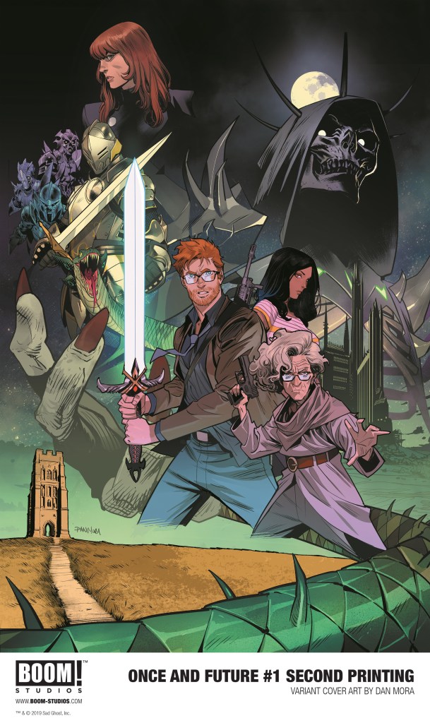 BOOM! Studios have just announced that, hot on the heels of its first issue being rushed back to print for an incredible FIFTH time, Kieron Gillen, Dan Mora and Tamra Bonvillain’s ONCE & FUTURE is being promoted to an ongoing series.
