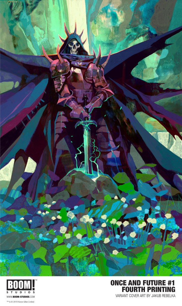If you missed out on the first print of the first issue, ONCE & FUTURE #1 Second Printing, featuring a new variant cover by Dan Mora will be available for sale on August 28, 2019. ONCE & FUTURE #1 Third Printing, with a new variant cover by Dan Mora, will be available on September 4, 2019 at local comic book shops. ONCE & FUTURE #1 Fourth Printing, with a new variant cover by acclaimed artist, Jakub Rebelka (Joss Whedon’s Angel), will be available on September 11, 2019 at local comic book shops. ONCE & FUTURE #1 Fifth Printing, with a new variant cover by acclaimed artist, Khary Randolph (Excellence), will be available on September 18, 2019 at local comic book shops.